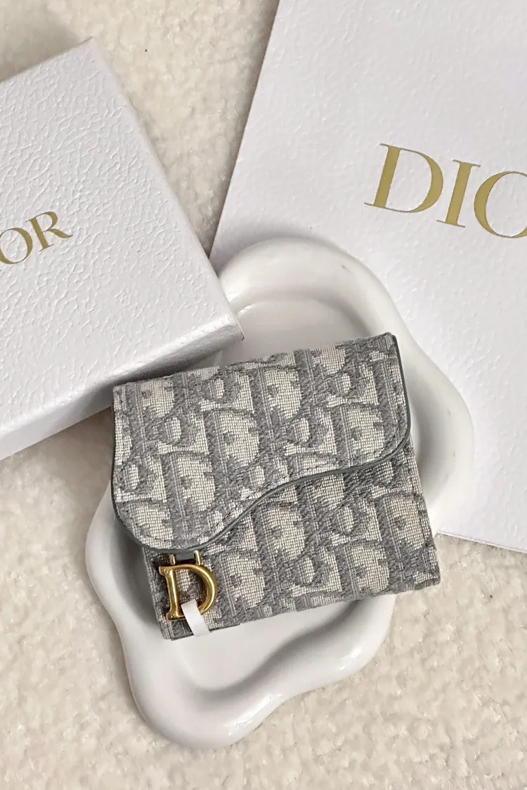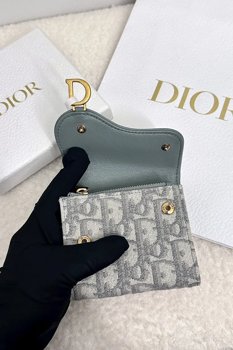 Dior 灰色馬鞍短夾