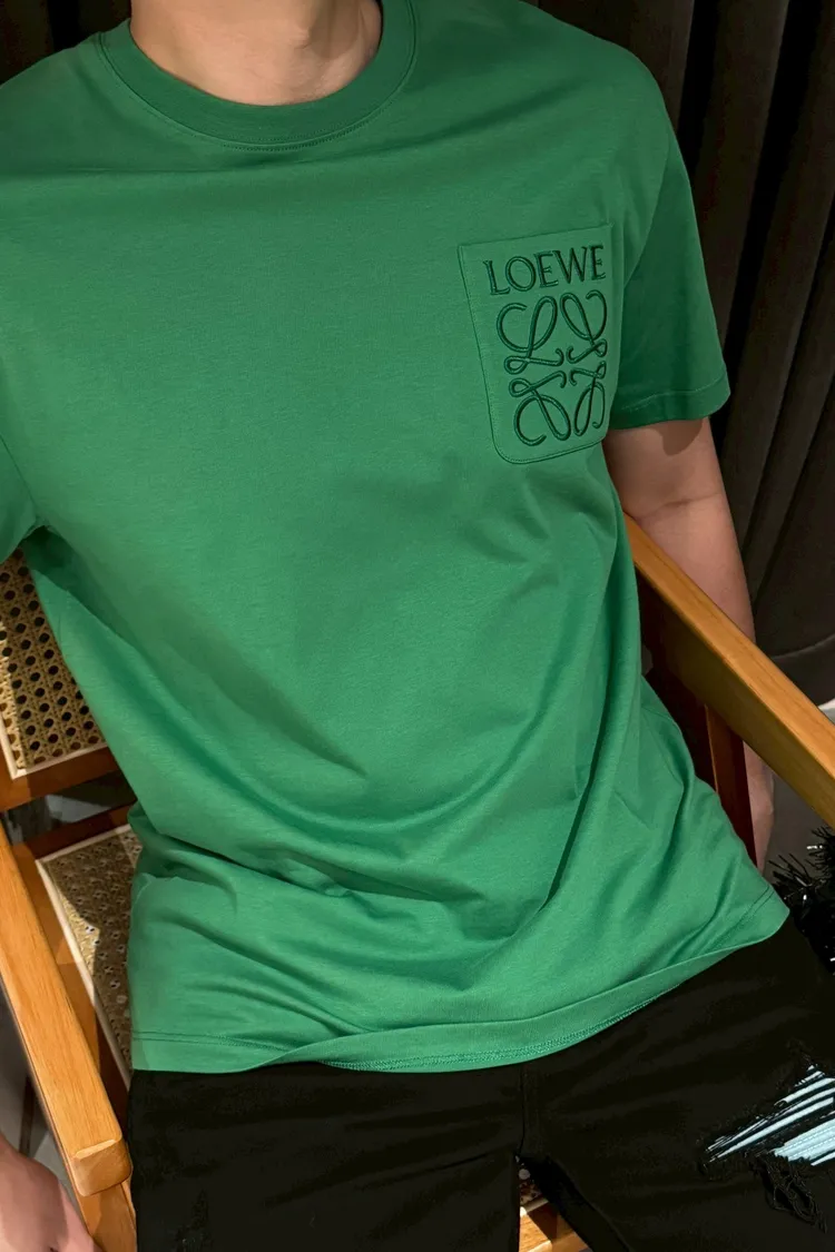 LOEWE 綠刺繡口袋素T