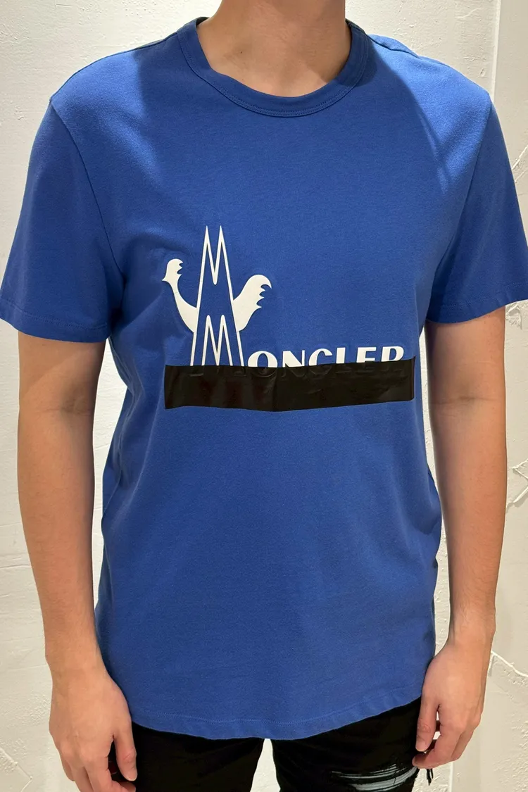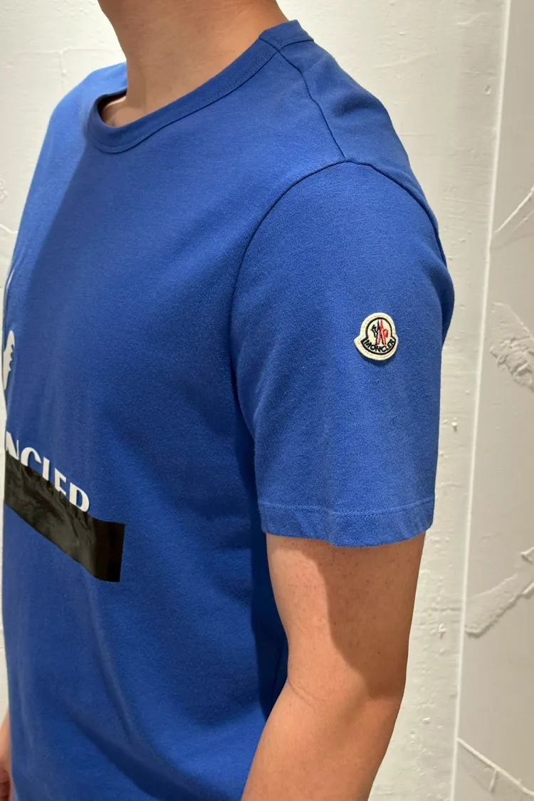 MONCLER 藍底黑膠文字短袖