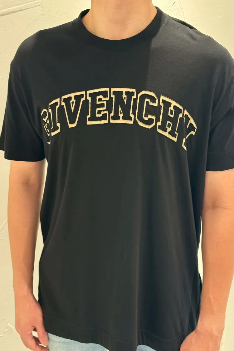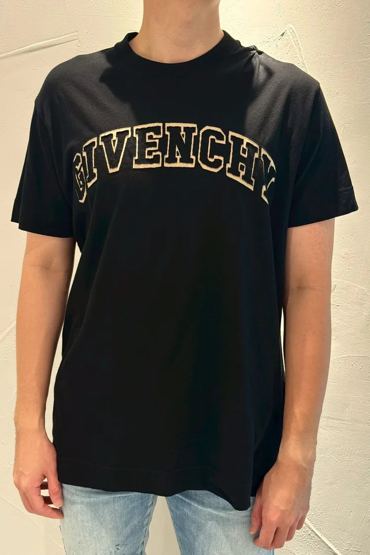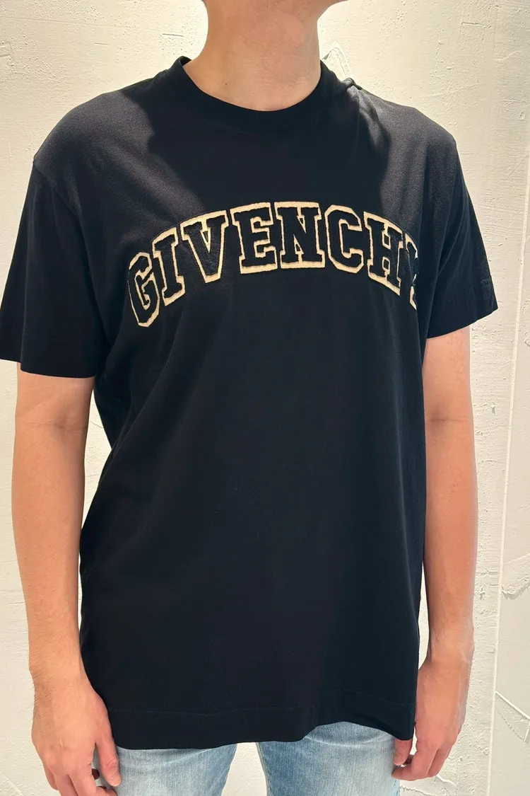 GIVENCHY黑底植絨紀凡希文字短袖