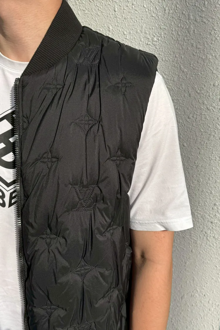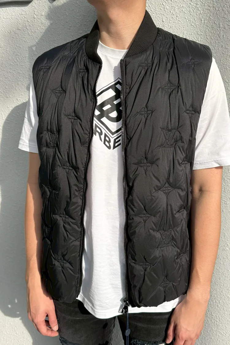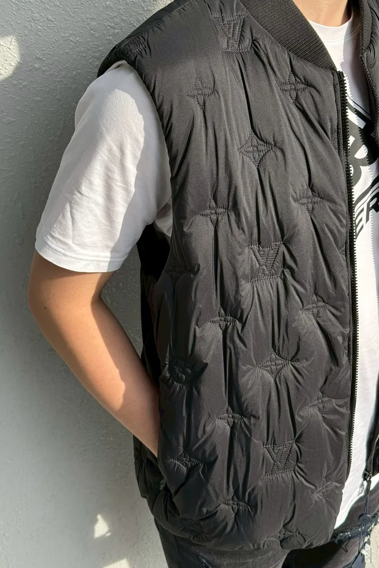LV滿版壓印輕羽絨黑背心