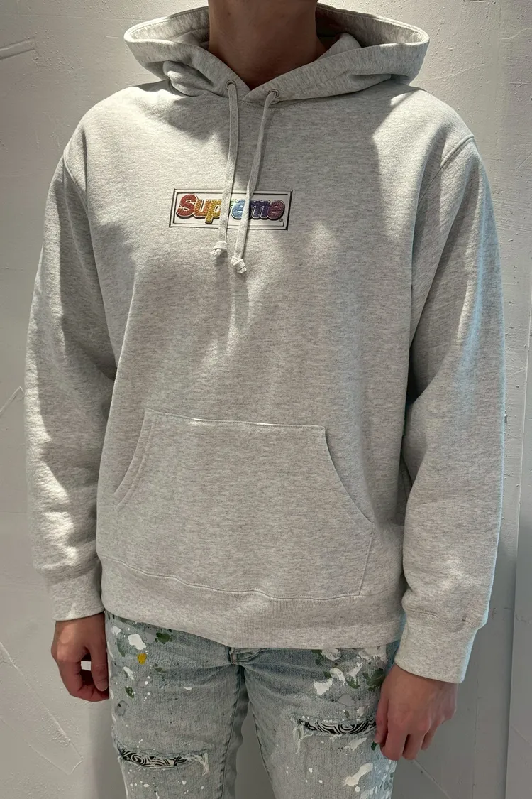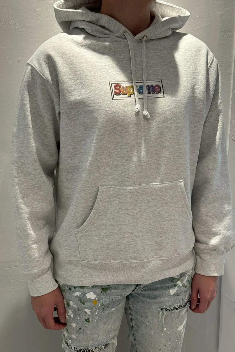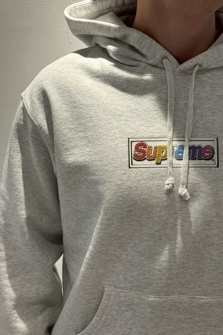 SUPREME 胸前彩色文字灰帽T
