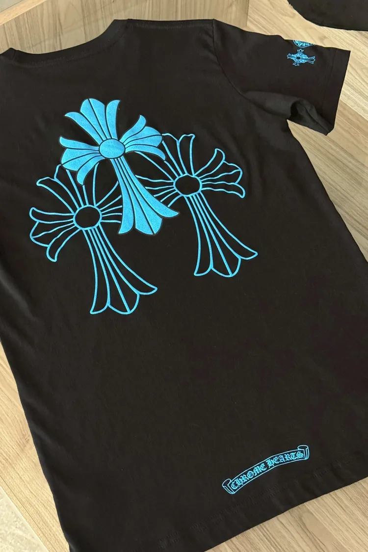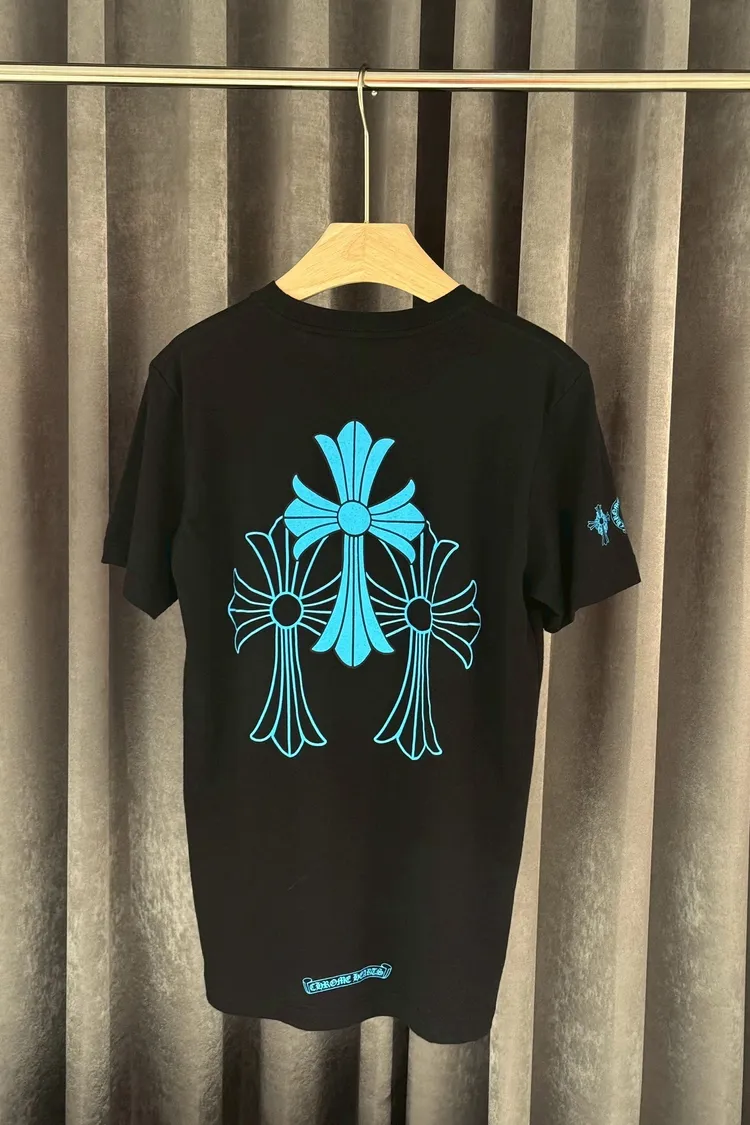 Chrome Hearts克羅心黑底背後三藍十字短袖