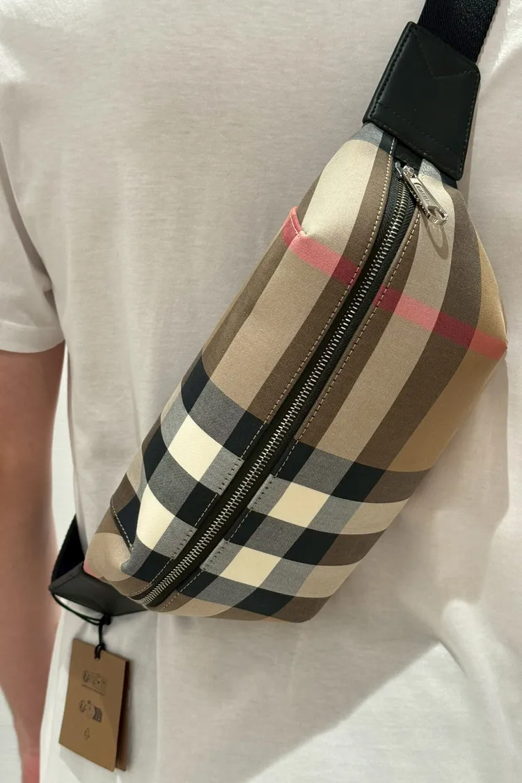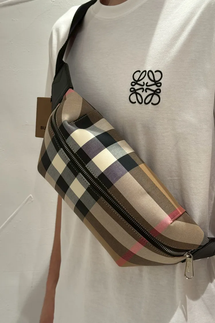 Burberry 棕色格紋腰包