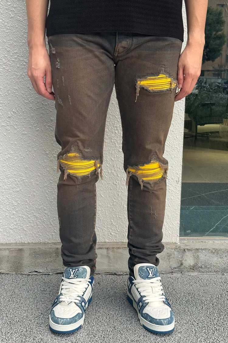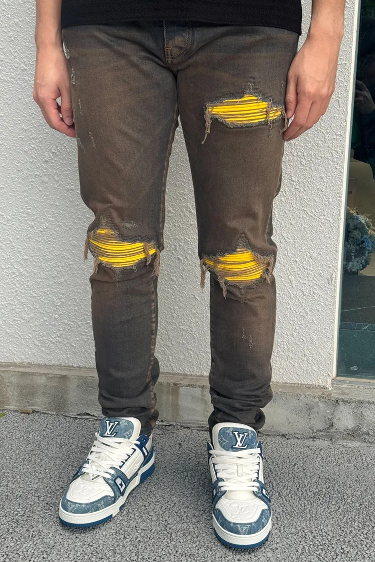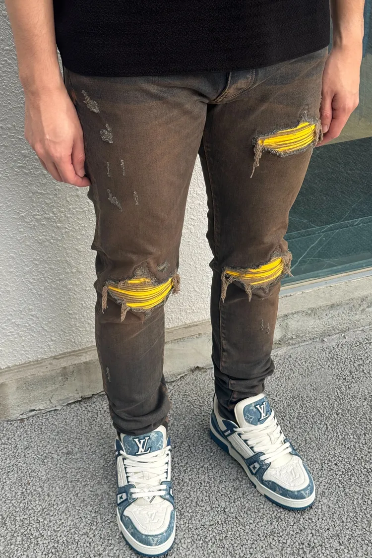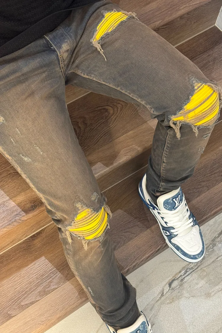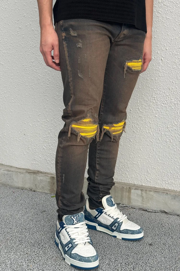 AMIRI 仿舊檸檬黃補丁MX1牛仔褲
