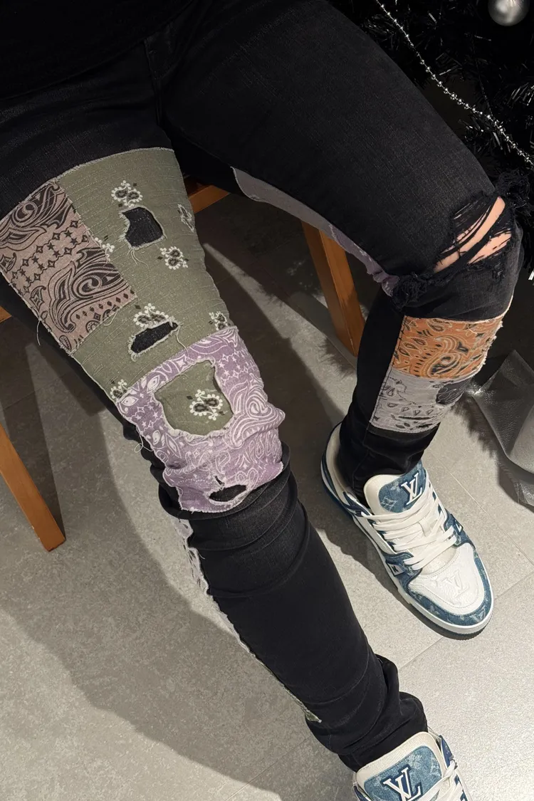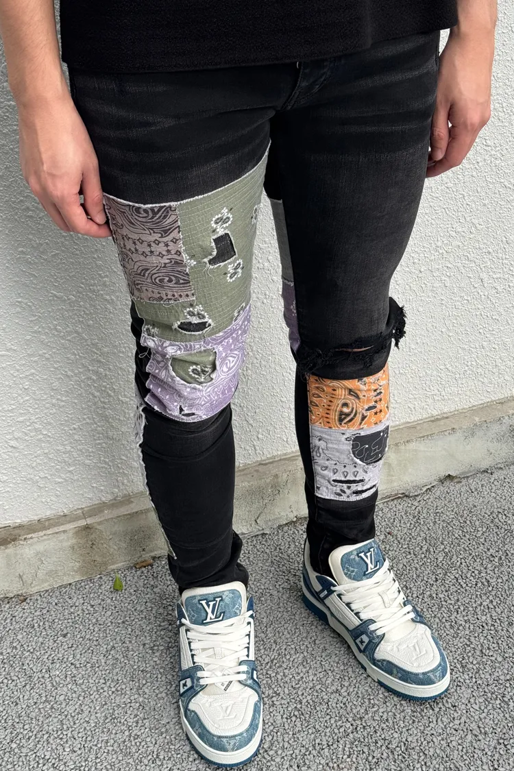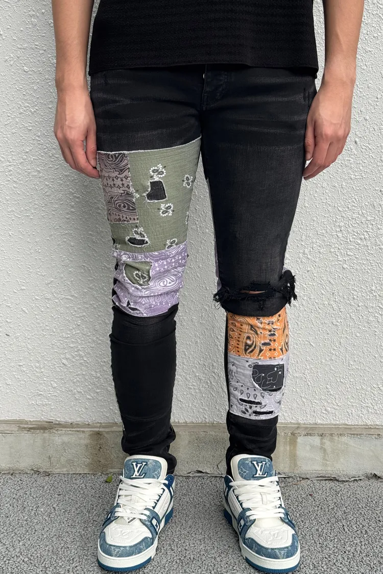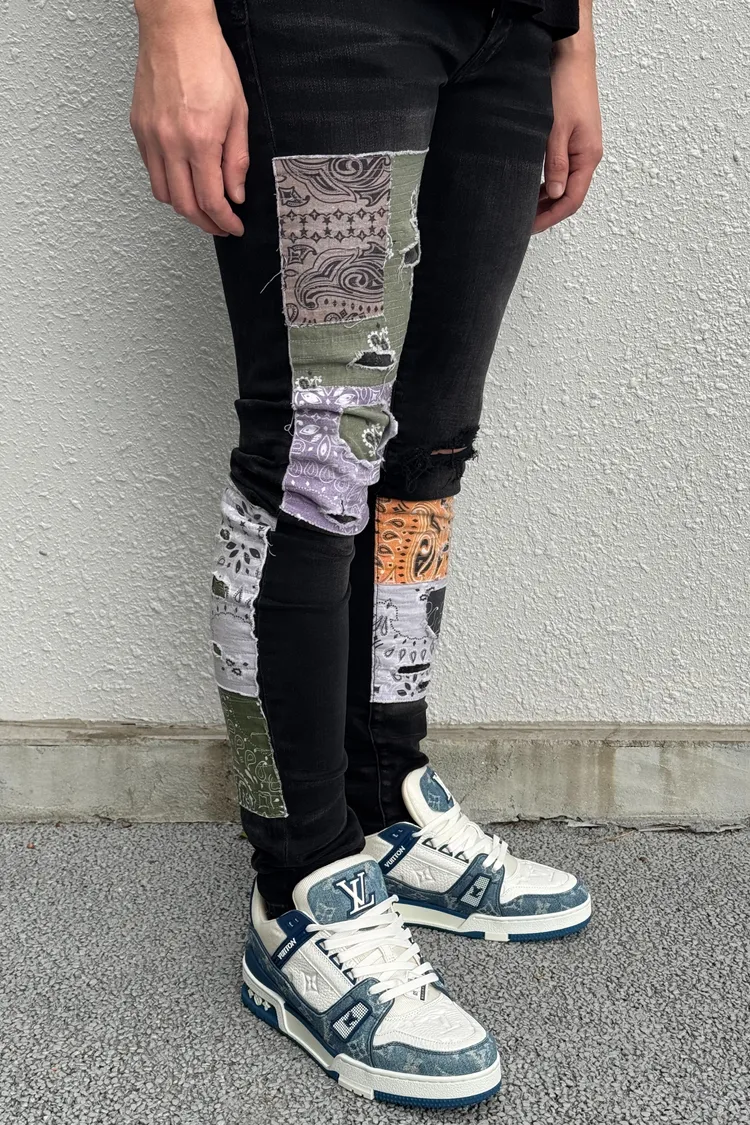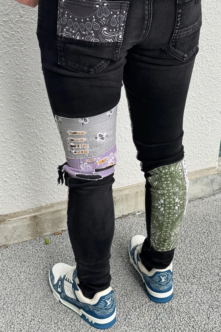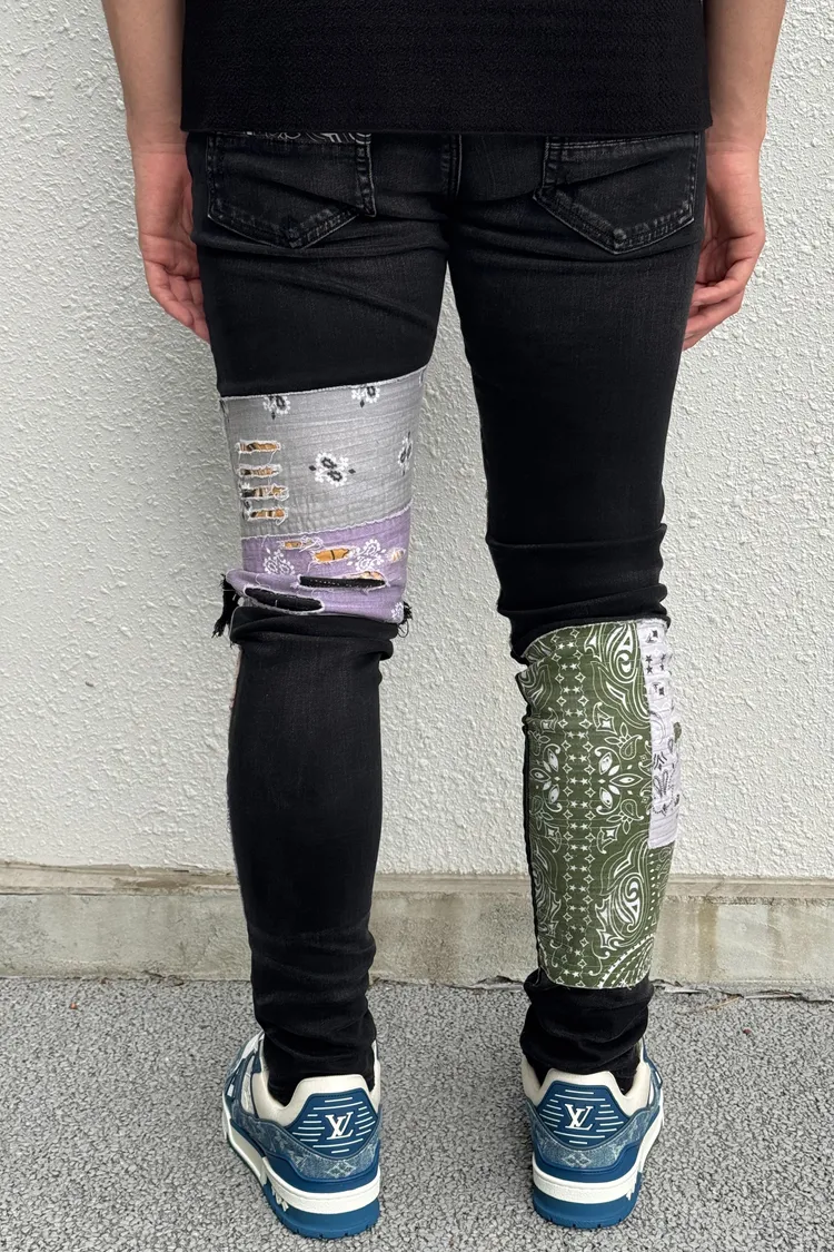 AMIRI 黑底腰果花補釘牛仔褲