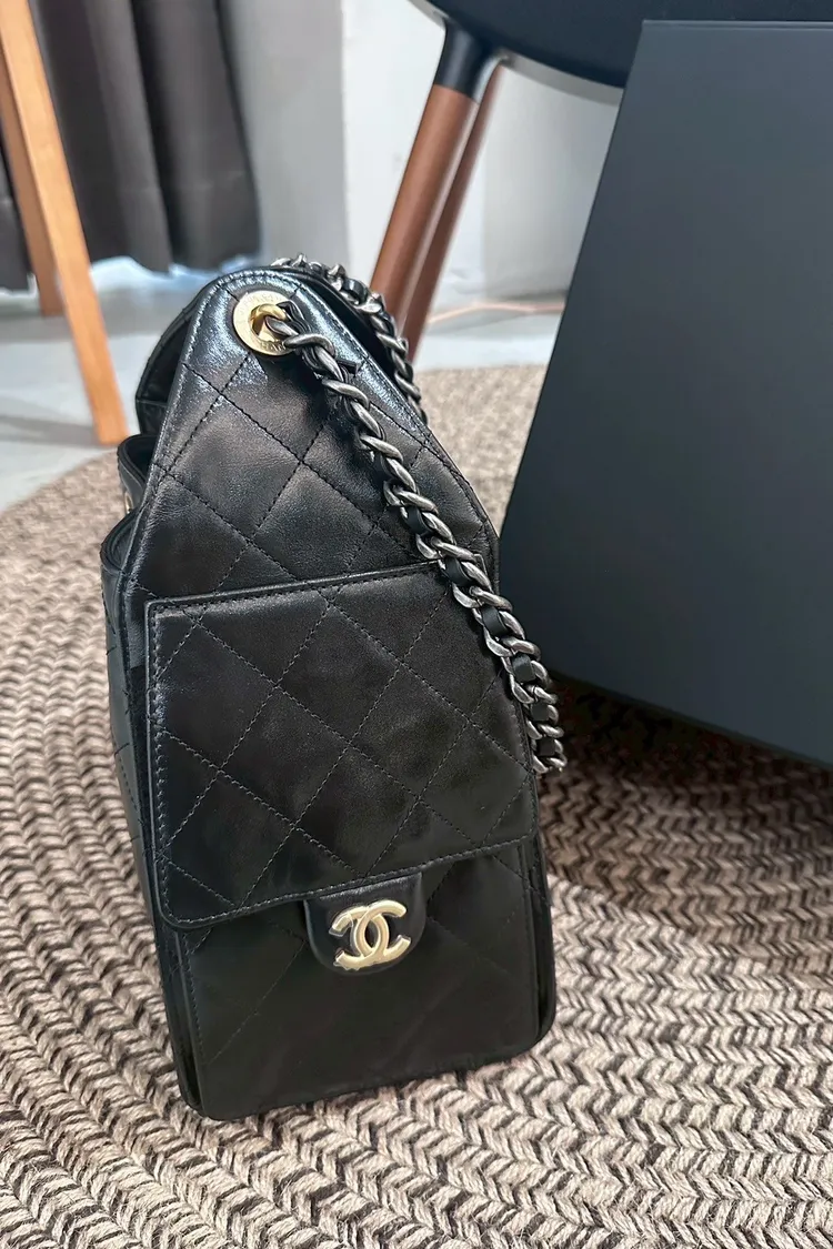 Chanel 25bag 油蠟皮鴛鴦扣小號