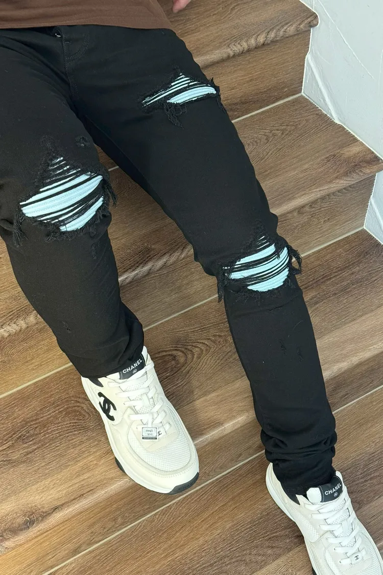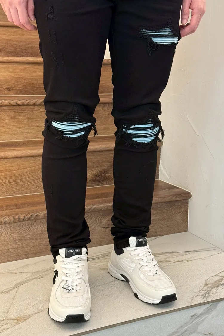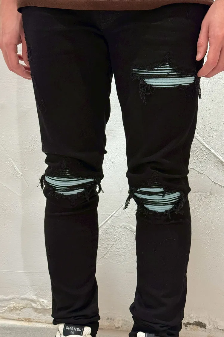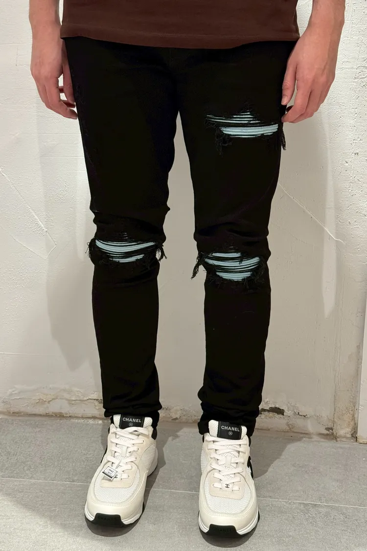 AMIRI黑底天空藍補丁MX1牛仔褲