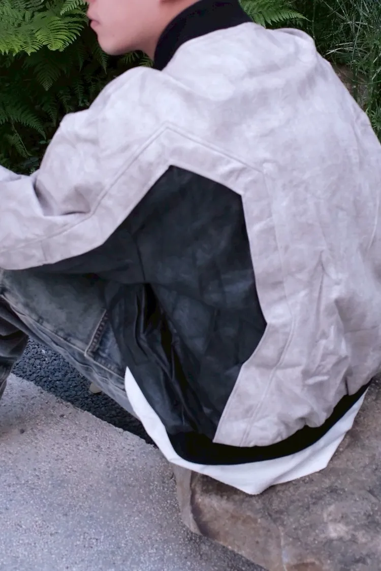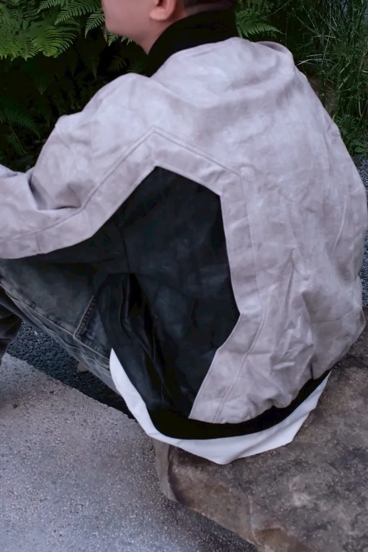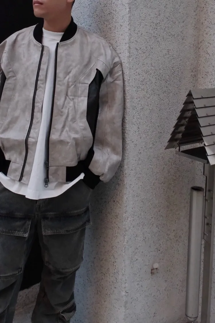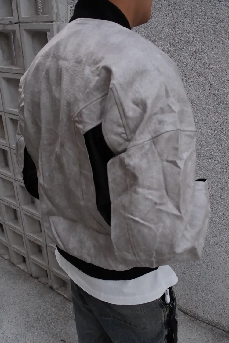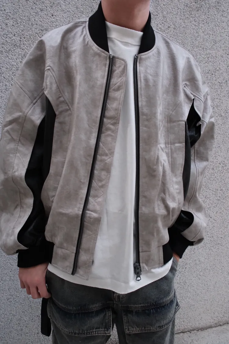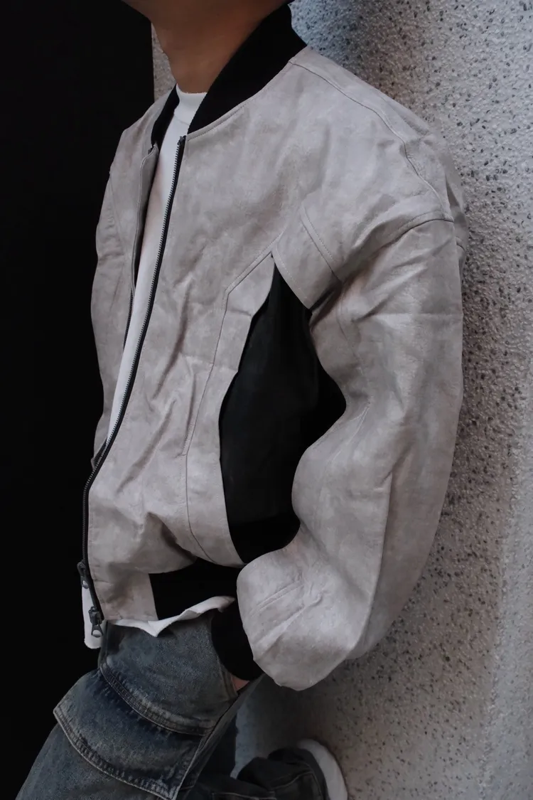 機車風夾克拼色皮外套