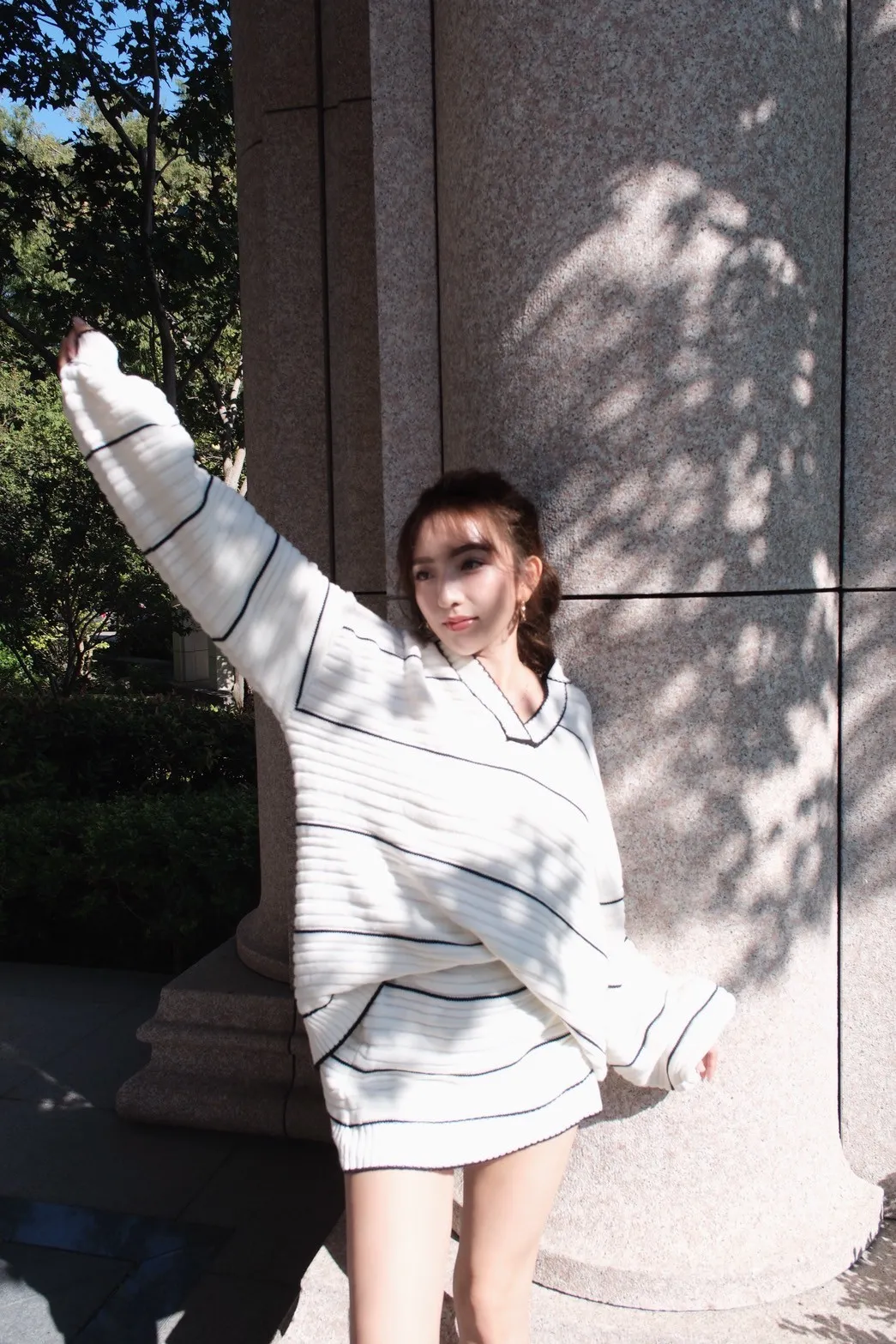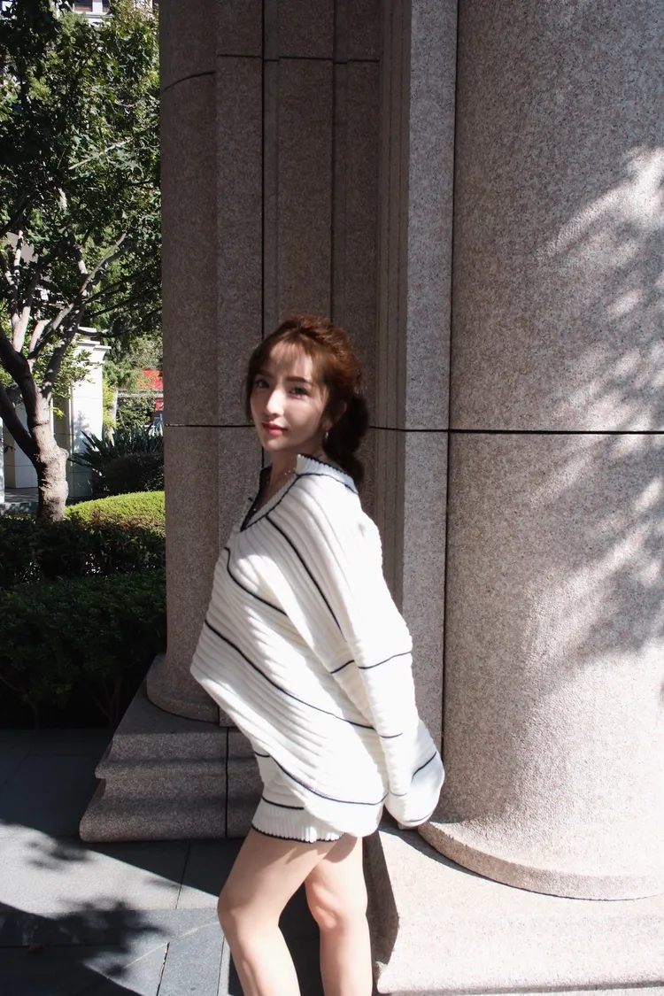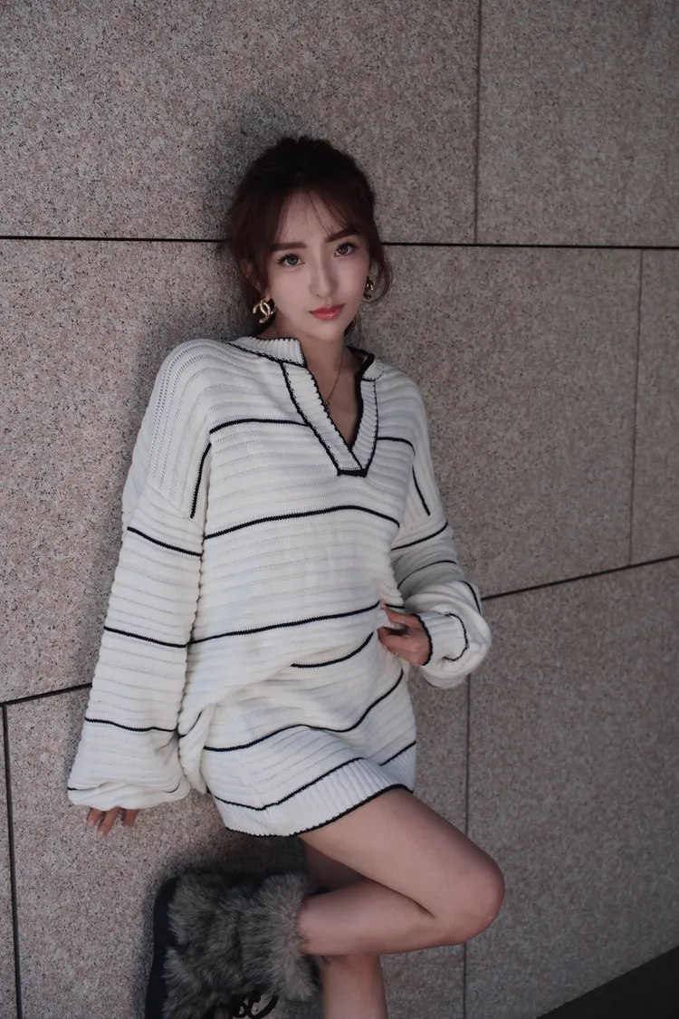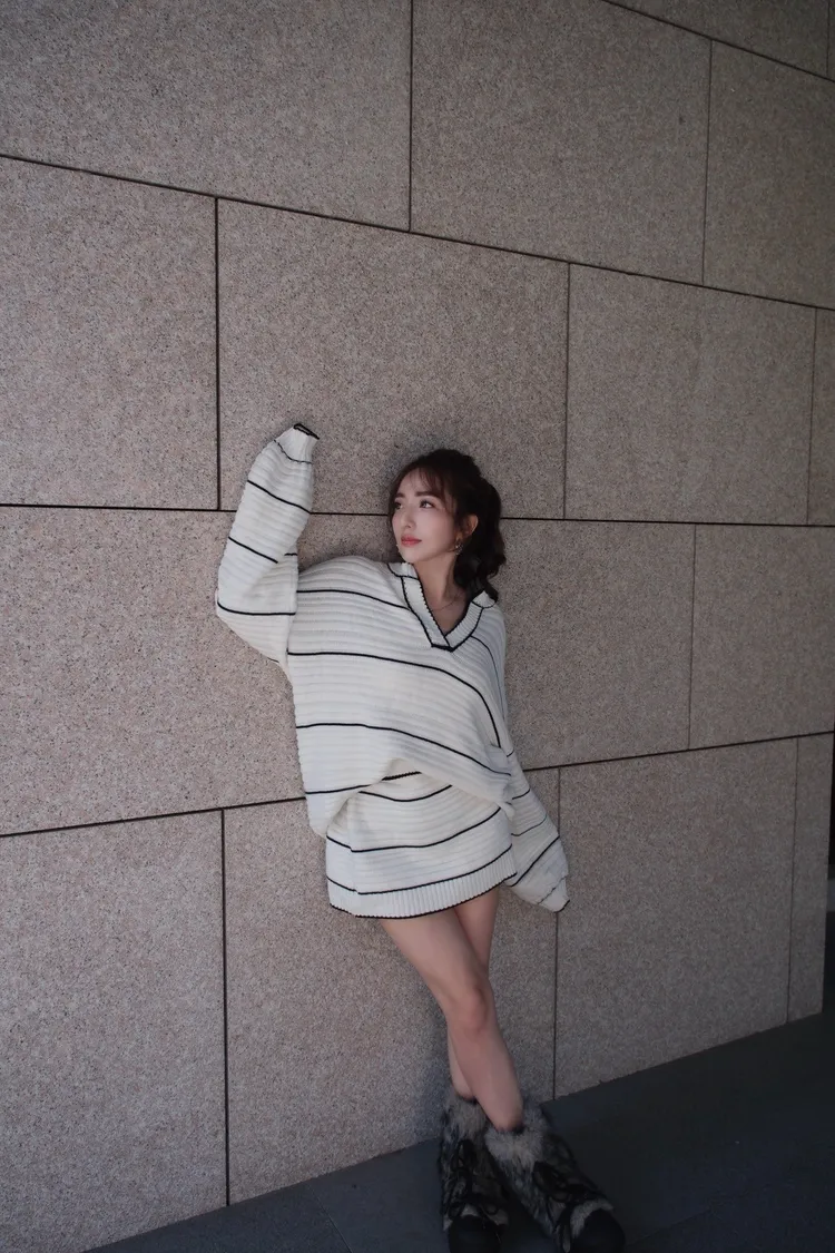 黑白線條針織V領套裝
