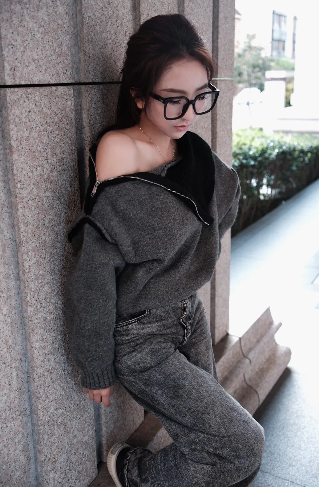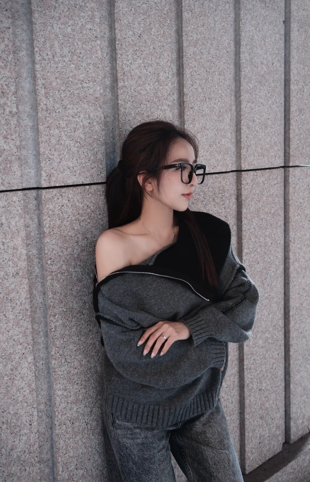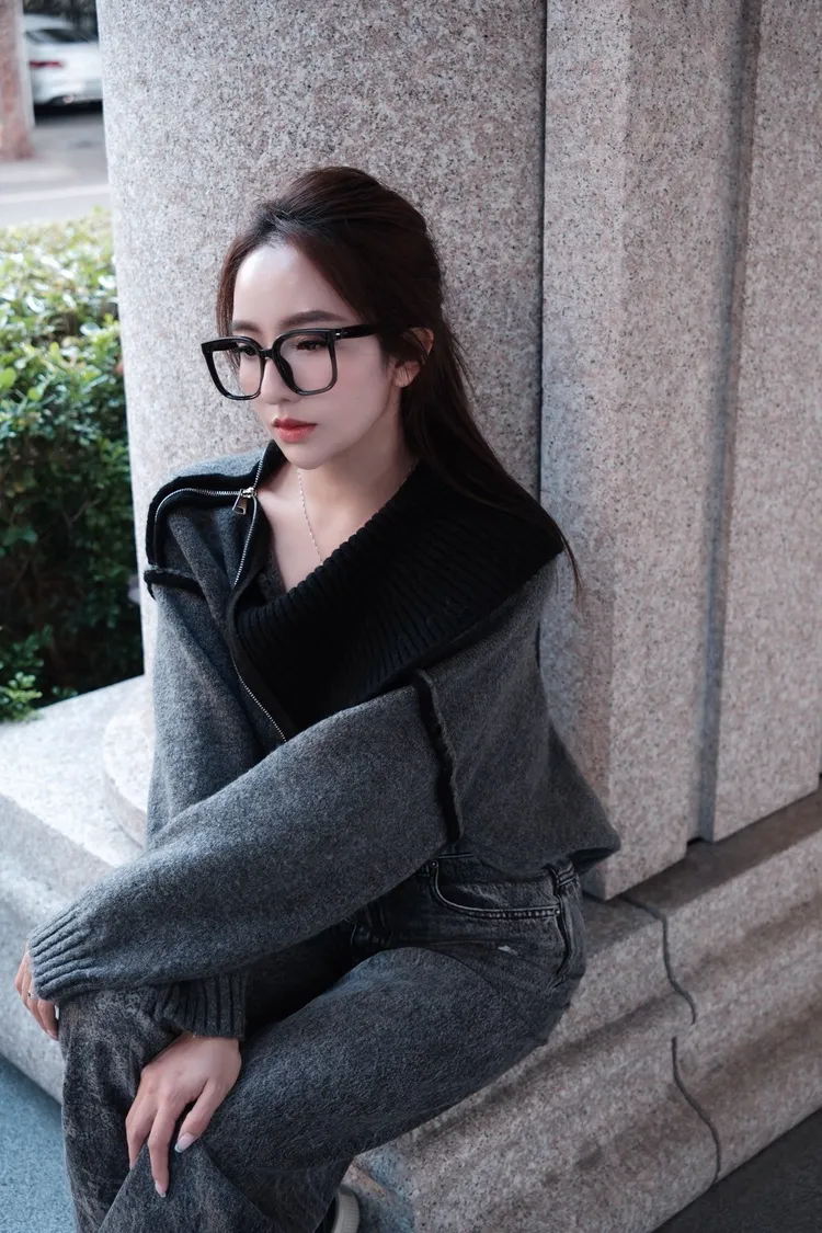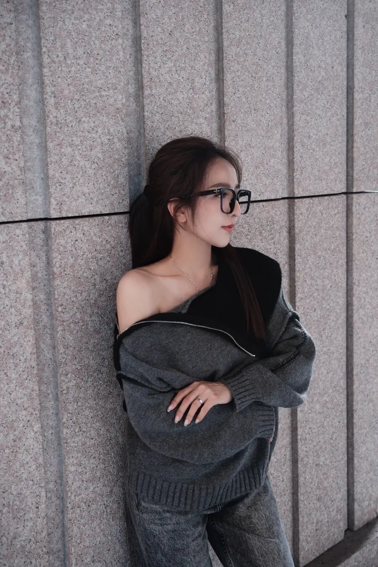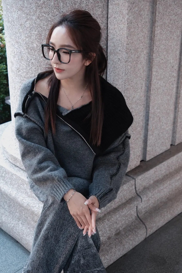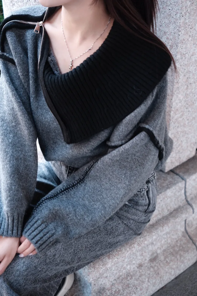 多穿法針織拉鍊一字領毛衣