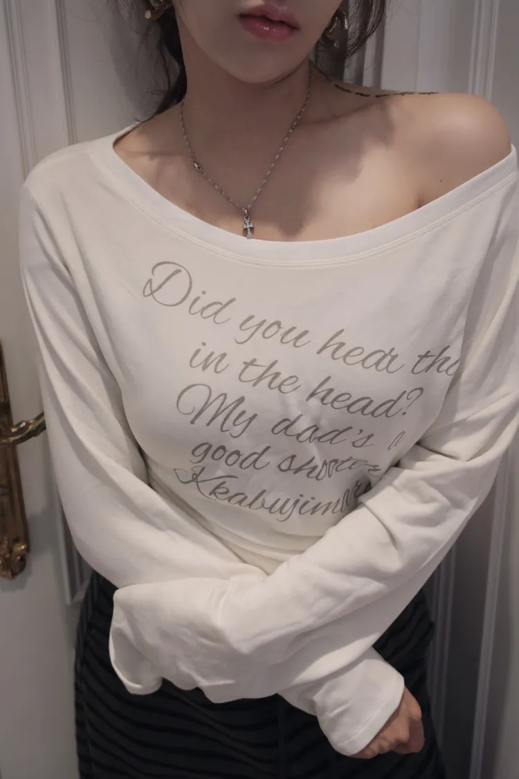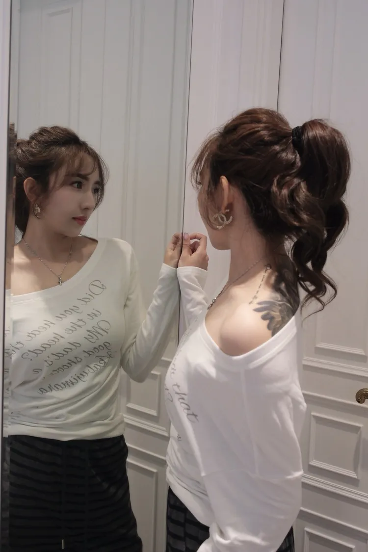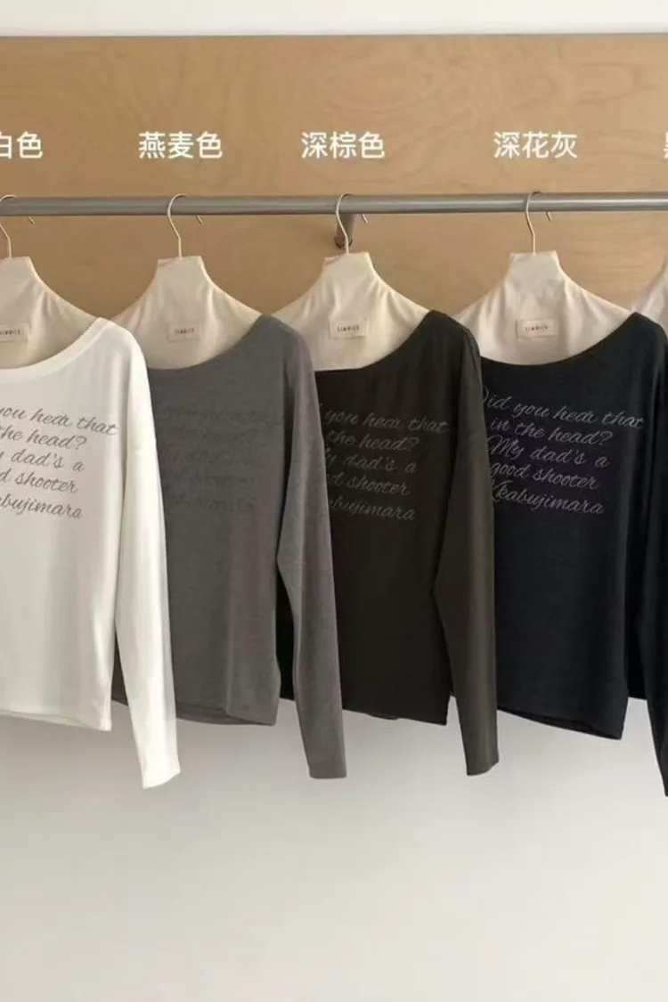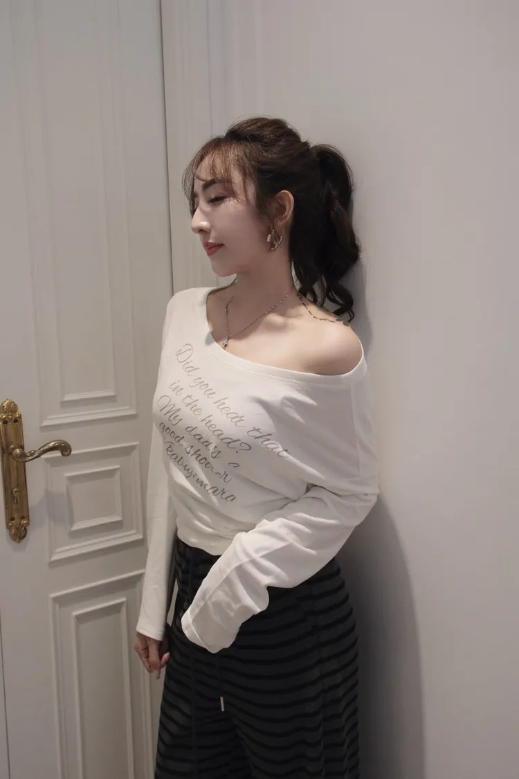 一字領斜肩內刷毛上衣